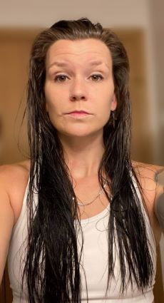 “It took me years to work through the constant pressure to look ‘girly.’ I was so uncomfortable with myself, even though I technically looked like what a stereotypical woman should look like (i.e., long hair, painted nails, tight clothes), but it just wasn’t me,” says Wilburn. “I would then fight with myself and think that I’d be even more uncomfortable if I cut my hair and dressed the way I wanted. As I got older, I realized that those concepts are made up and femininity isn’t defined by what we wear or what our hair looks like. I slowly started to wear what I wanted and felt great; the hair was the last to go,” she says. “I made a post about how I wanted to cut all my hair off and dye it blonde. Kyleen messaged me instantly and said she could get me in the next morning. It was set. My wife was so nervous for me—I was known for having ridiculously long hair. But I wasn’t nervous at all; something just clicked and I was ready. It was freeing knowing that soon it would be gone, and I knew I had the right stylist who could give me what I wanted. As soon as it was done, a weight felt like it had been lifted. I looked in the mirror and I had never felt so confident—that cut was made for me. I never thought a hairstyle could drastically change the way I saw myself, but it did. I wish I could bottle up that feeling and give it to people. Kyleen is a huge part of my story on self-discovery. I am forever grateful,” says Wilburn.